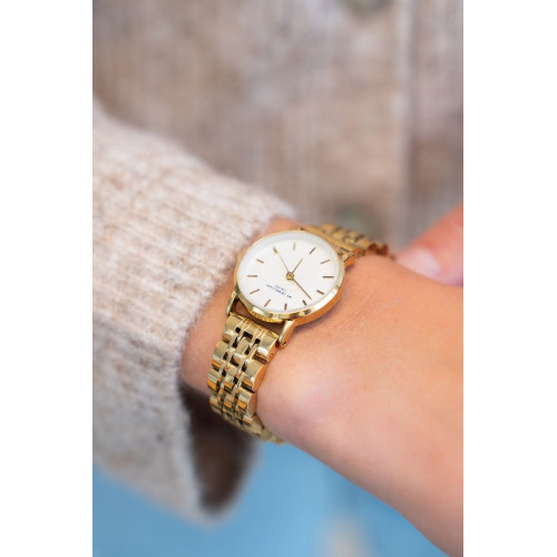 ჯაჭვის სამაჯურიანი საათი თეთრი მრგვალი ციფერბლატით