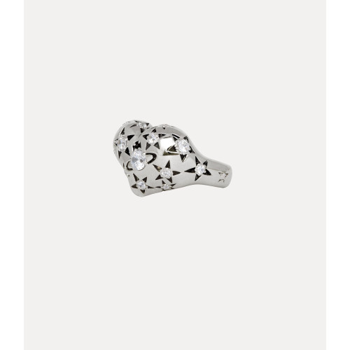 ჩვენი Lee ბეჭედი დამზადებულია გადამუშავებული ვერცხლისგან და მოპირკეთებულია კაშკაშა პლატინის ტონის მოოქროვილით. ბეჭედი ასიმეტრიული გულის ფორმას იღებს, რაც ვივიენის კაცობრიობისა და პლანეტისადმი სიყვარულს გამოხატავს, ხოლო ზედაპირზე მიმოფანტულია კრისტალებით მოჭედილი ვარსკვლავები და სფეროს მოტივები.